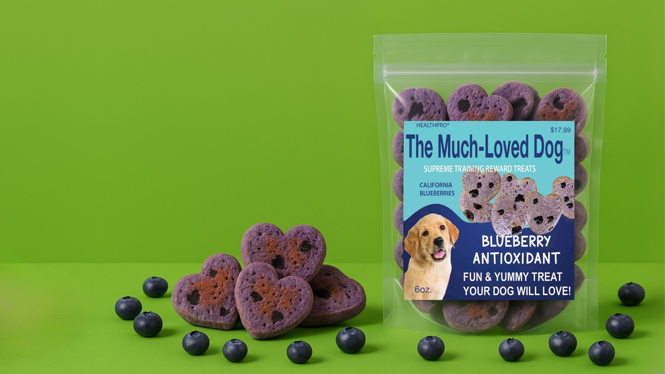 Made with antioxidant rich California blueberries TheMuchLovedDog™ Treats Support Health and Happiness in Every Bite!